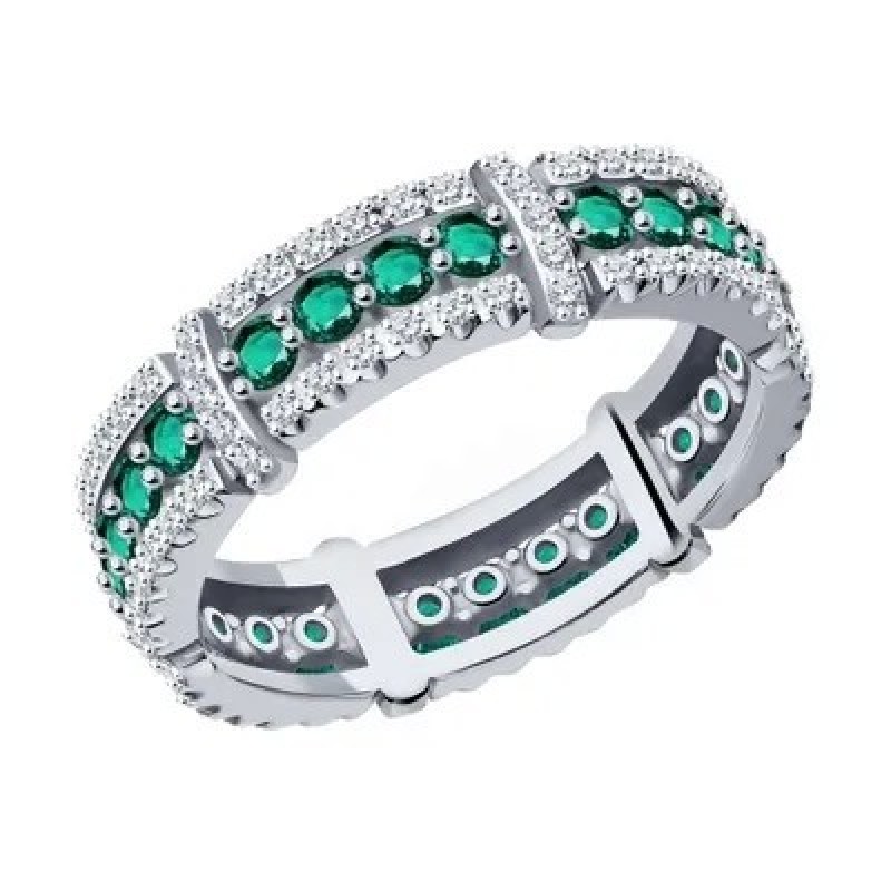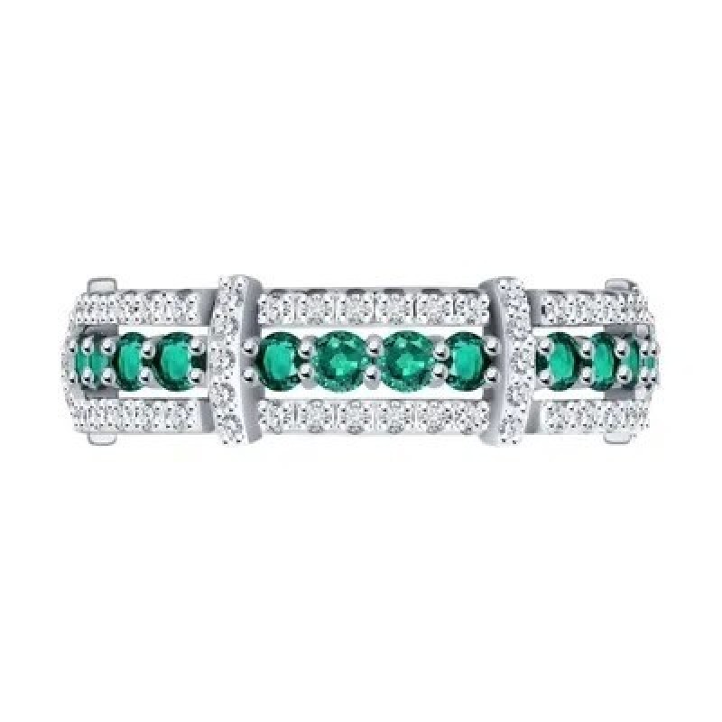SOKOLOV, Кольцо из белого золота с бриллиантами и изумрудами, 3010622-3, 585 проба