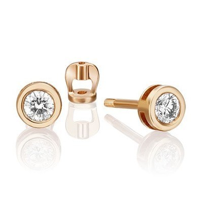 PLATINA Серьги-пусеты из красного золота 585 пробы c бриллиантом