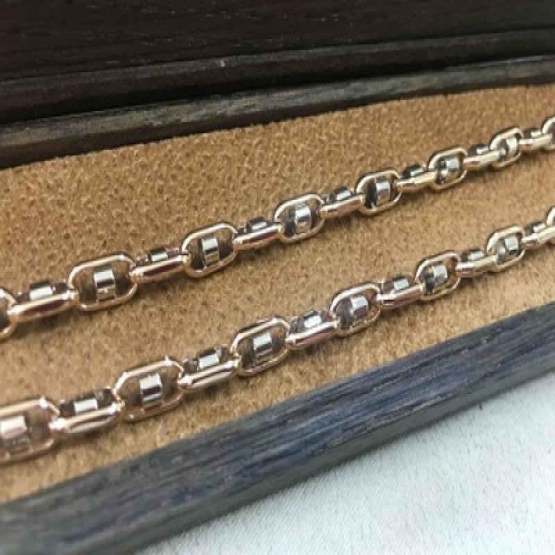Полновесная якорная цепь со вставками из красного и белого золота 585 пробы 60см